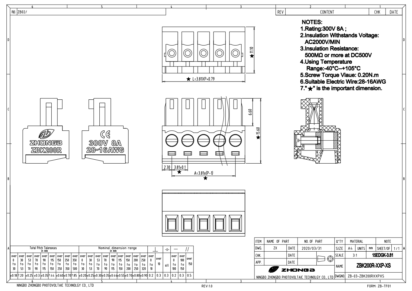 Material Plastic: PA66 Clamp: C5191 Phosphor Bronze, Nickel-Plated Screw: C1018 Steel, Blue-White Zinc Plated Cage Square: C3604 Copper, Nickel-Plated